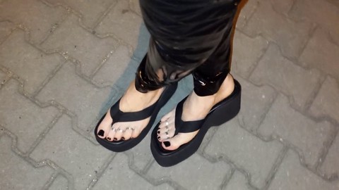 Outdoor foot exposure with crossdresser Emily Rossi in a public fetish showcase
